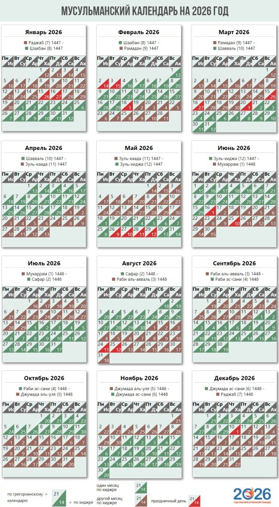 В большинстве стран с мусульманским населением — включая Турцию, страны СНГ, Европу и Америку — официально применяется григорианский календарь. Однако религиозная жизнь мусульман ориентируется именно на исламское летоисчисление: по нему определяются Рамадан, праздники, хадж и значимые религиозные даты.